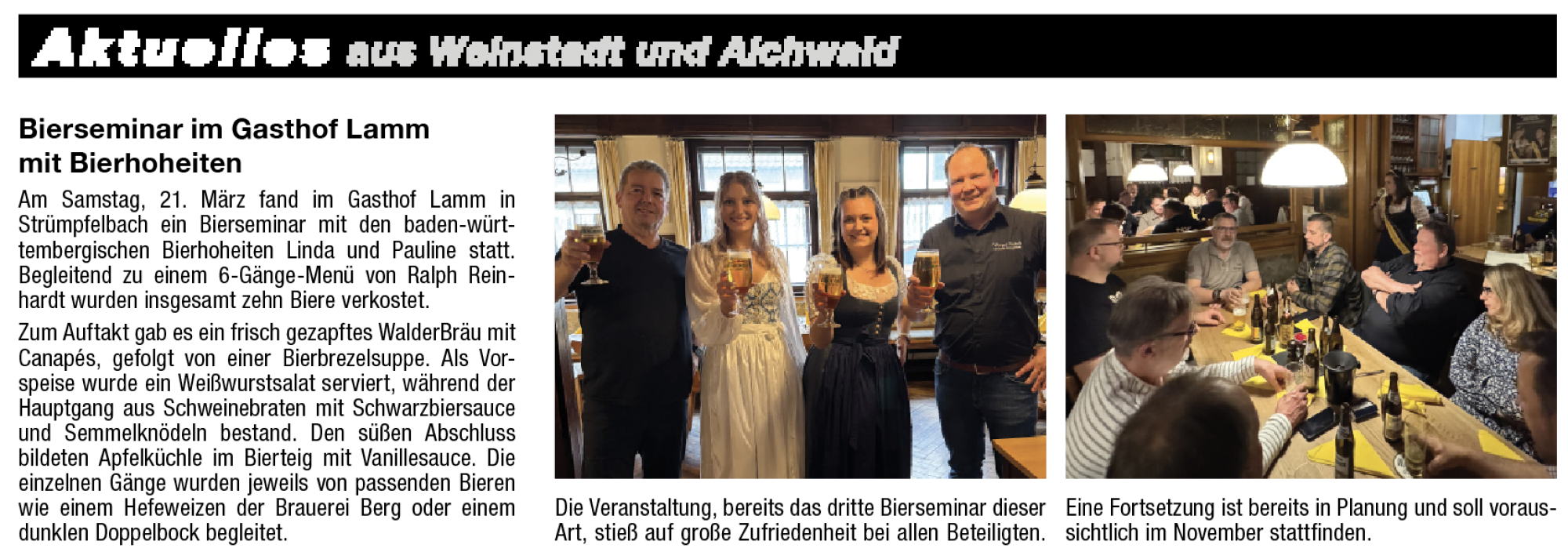 Bierseminar im Gasthof Lamm mit den Bierhoheiten